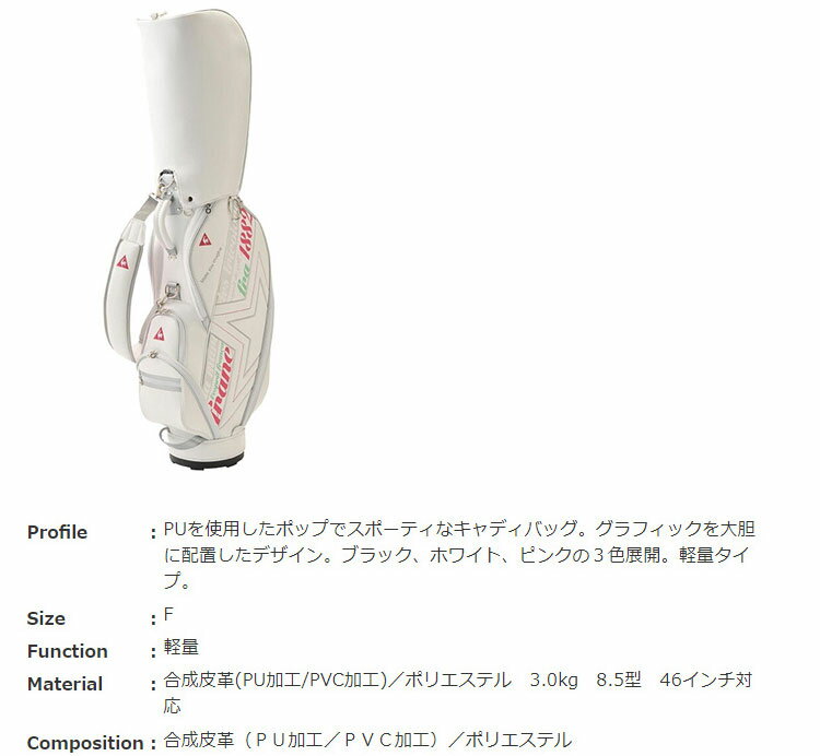 ●ルコックゴルフ レディース キャディバッグ QQCPJJ01● PUを使用したポップでスポーティなキャディバッグ。
