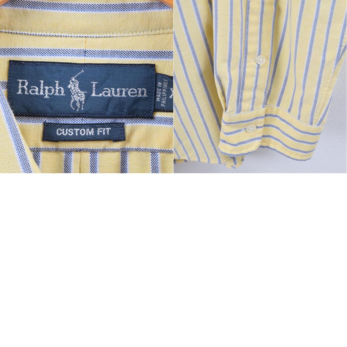 商品詳細ブランド・Ralph Lauren・ラルフローレン・特徴・ボタンダウン・トラディショナル カジュアル・モデル/形状・長袖 ボタンダウンストライプシャツ・素材・コットン:100%・色・イエロー系 黄色・ブルー系 青色・ホワイト系 白色・柄・ストライプ柄・ワンポイント・生産国・フィリピン製・年代サイズ・メンズXL・表記サイズ:XL・着丈:80cm・身幅:62cm・肩幅:50cm・袖丈:60cm・コンディション・B・カテゴリ・メンズ・長袖シャツ・ボタンダウンシャツ・トップス・商品番号・wbh6107・取扱店・ネットショップ・スタッフコメントRalph Lauren 長袖 ボタンダウンストライプシャツ / メンズXL / 商品番号 wbh6107※USEDですので使用感などございますが、まだまだご愛用していただけます。