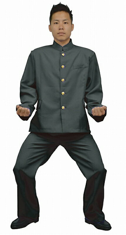 【セット内容】学ラン上下、※上着のポケットは飾りです、※パンツのウエストにはベルト通しが付いてのですっきりフィットします、※パンツの両サイドにポケットあり【サイズ】上着:胸囲約120cmまで、着丈約67cm、袖丈約61cm、パンツ:ウエスト約85cmまで、パンツ丈約102cm、股下約72cm、※モデル身長:約170cm【洗濯】洗濯できません※ビニール開封後の商品は、不良品の場合を除き、返品・交換ができません。