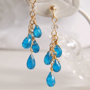 ネオンブルーアパタイトの4粒のピアス(イヤリング)アクセサリー アクセ 誕生日 プレゼント 女性 レディース 女の子 ギフト かわいい 可愛い 結婚式 パーティー イアリング ピアス 夏のおしゃれ 華奢 プレゼント 喜ばれる 贈り物 通販 楽天)